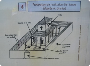 Reconstitution d'un fanum avec sa cella, sanctuaire, édifice religieux.